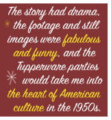 But what jumped out at me were the papers of Earl Silas Tupper, the papers of Brownie Wise, and a collection of early Tupperware films given by one of Tupperware’s first distributors. The story of Tupperware’s early years was a film that was waiting to be made, staring me in the face. The story had drama, the footage and still images were fabulous and funny, and the Tupperware parties would take me into the heart of American culture in the 1950s.